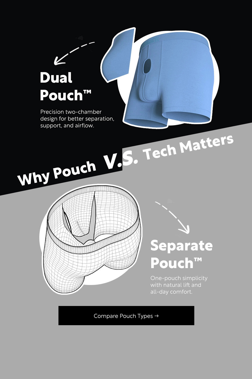 Dual pouch has fashionable, three-dimensional design that gives men's private areas more room and provides good support perfect to eliminate pinching and binding is what the description says. Meh.What these underwear offer are two things.One: The cotton is cotton-breathable and smooth.Two: the pouch offers enough material to tuck around your manhood and testicles to get rid of skin-on-skin chafing. This is wonderful. I have been looking for this combo for quite some time.And as for the men reviewers who claim enhancing of private parts so that women take notice, I am so sorry for their troubled upbringing.
