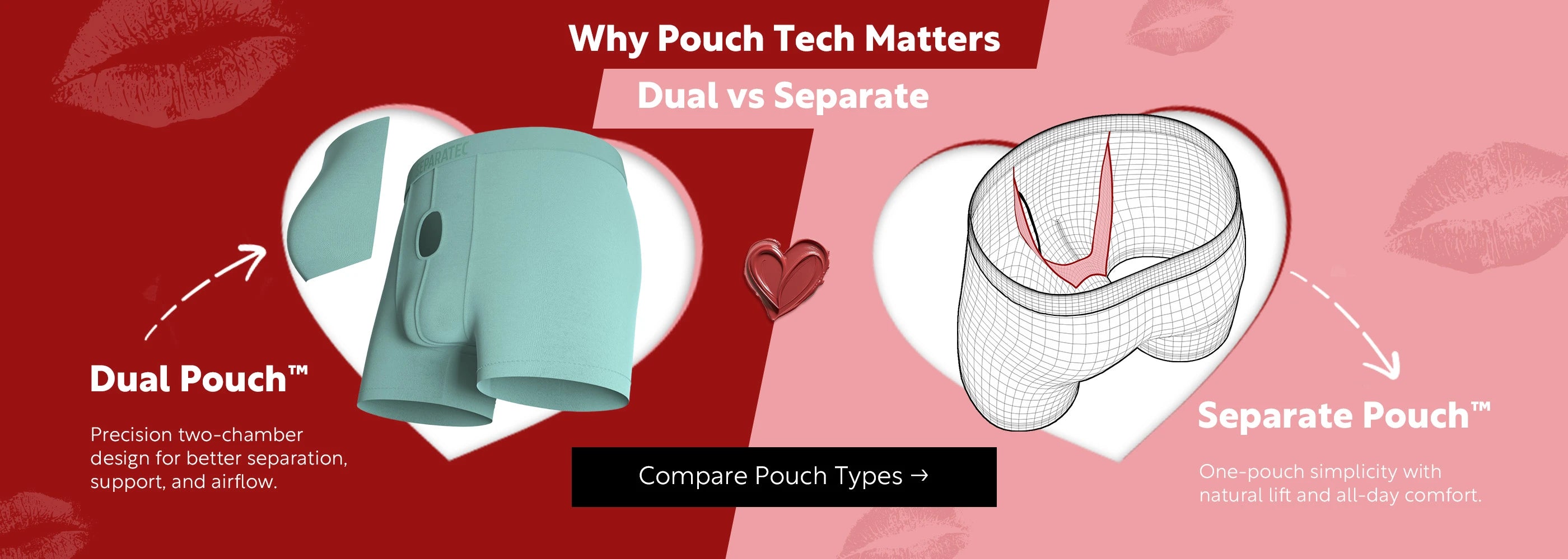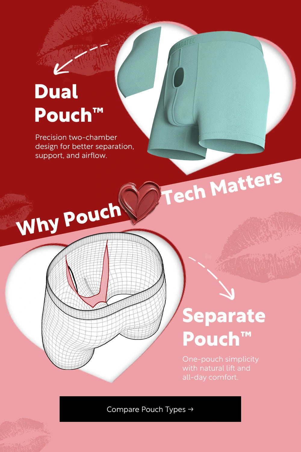 Dual pouch has fashionable, three-dimensional design that gives men's private areas more room and provides good support perfect to eliminate pinching and binding is what the description says. Meh.What these underwear offer are two things.One: The cotton is cotton-breathable and smooth.Two: the pouch offers enough material to tuck around your manhood and testicles to get rid of skin-on-skin chafing. This is wonderful. I have been looking for this combo for quite some time.And as for the men reviewers who claim enhancing of private parts so that women take notice, I am so sorry for their troubled upbringing.