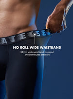 A 6.5” inseam prevents ride-up, while the 38mm wide waistband stays flat and distributes pressure without digging in.