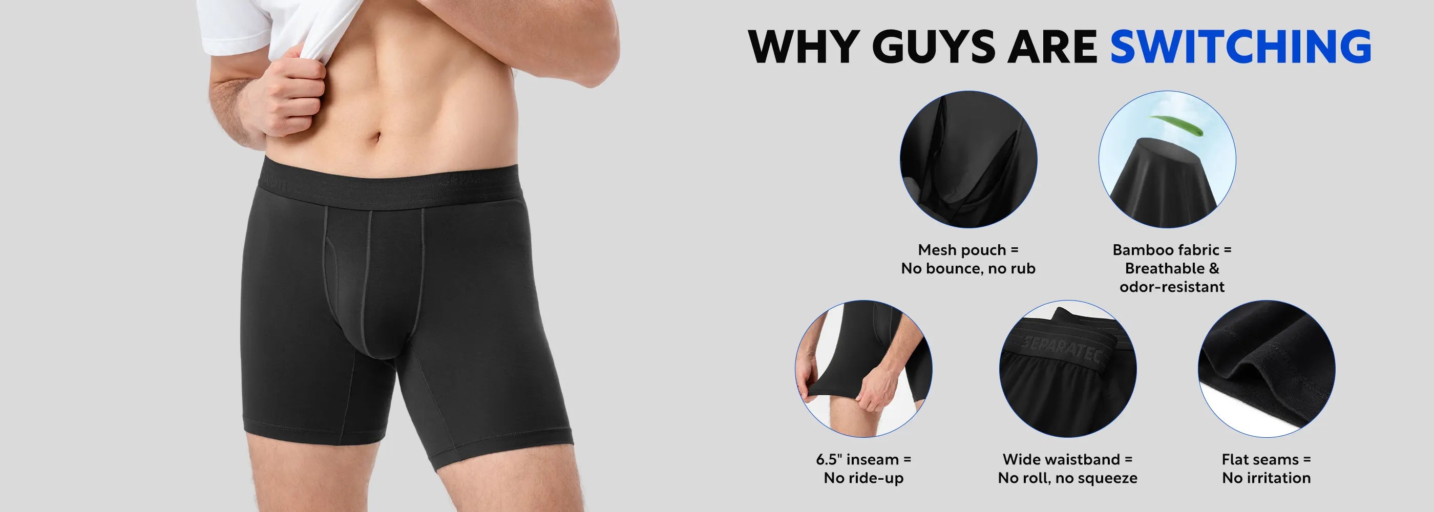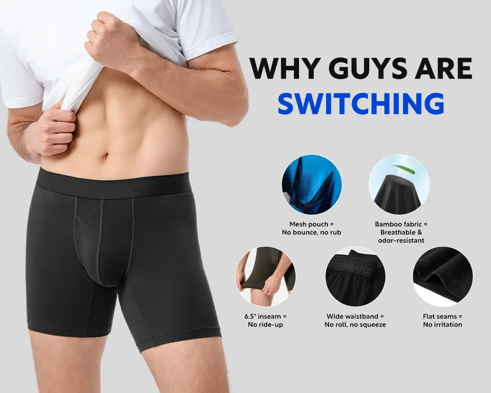 Separate Pouch™ Comfort Bamboo Open Fly Boxer Briefs 4 Pack