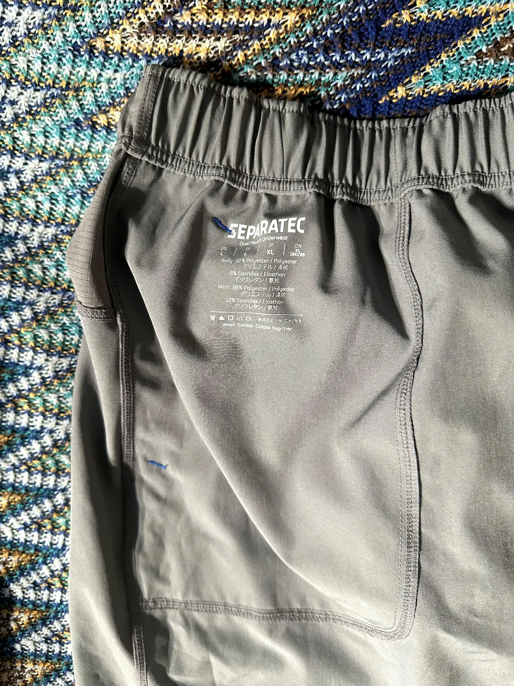 I’m impressed with the construction— the rear seams are especially flattering, the fabric feels the same as major brand name quick-dry fabric, and all of the seams are straight and neat with no sloppy stitching. My husband likes them for the zippered pockets and the drawstring waist. He says they’re going to keep him cool on hot summer days. They’re unlined and don’t conceal much of anything bulge wise, so you may want to plan your corresponding underwear carefully! Size wise, they’re a bit small for an American large. He has a size 35-36 waist and usually wears a L these days in shorts and sweatpants, but he might love these even more if they were roomier.