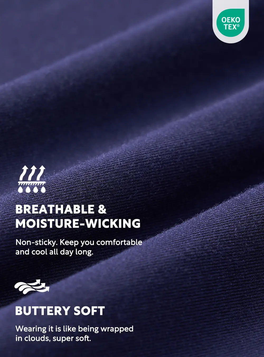 High-count modal fibers are fine and soft, skin-friendly, moisture-wicking, and breathable for all-day comfort.