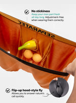 Just flip up the front pouch when nature calls.